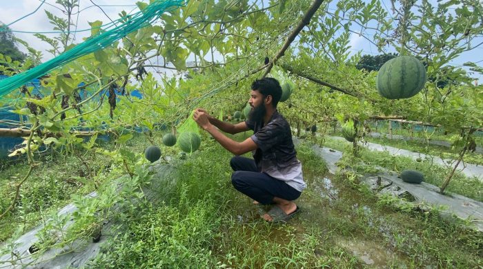 শস্য ভান্ডার হিসেবে খ্যাত সিরাজগঞ্জের তাড়াশ উপজেলায় এবছর সোনালী আঁশ পাট চাষে কৃষকের সুদিন ফিরেছে। এ বছর চলতি মৌসুমে বিভিন্ন এলাকায় পাট কাটা, জাগ দেওয়া ও পাটকাঠি থেকে পাট ছাড়ানোর কাজে ব্যস্ত সময় পার করছেন কৃষক। অন্য বছরের তুলনায় এবার পাটের ভালো ফলন ও দাম বেশি হওয়ায় কৃষকের মুখে ফুটেছে হাঁসি। চলনবিলের বিভিন্ন এলাকা ঘুরে দেখা গেছে, সময় মতো ভারি বৃষ্টি হওয়ায় বিভিন্ন জলাশয়ে পানি জমে। সেই পানিতেই এখন চাষিরা পাট কেটে নদী, নালা, খাল, বিল ও ডোবায় জাগ দেওয়া, আঁশ ছাড়ানো এবং হাট বাজারে তা বিক্রিসহ এখন ব্যস্ত সময় পার করছেন। তবে উপজেলার কিছু কিছু উচু এলাকায় পর্যাপ্ত পানি না থাকায় বিপাকে পড়েছেন তাঁরা। উপজেলা কৃষি অফিস সূত্রে জানা গেছে, এ মৌসুমে উপজেলার ৮টি ইউনিয়নের বিভিন্ন বিলে ৭ হাজার ১ হেক্টর জমিতে পাট চাষ হয়েছে। লক্ষ্যমাত্রার চেয়ে ৮০ হেক্টর বেশি জমিতে আবাদ বেড়েছে। সরকারের পক্ষ থেকে পাট চাষে উৎসাহিত করতে উপজেলার অনেক কৃষককে বিনামূল্যে সার ও বীজ বিতরণ করেছে কৃষি বিভাগ। বোপন মৌসুমে পর্যাপ্ত বৃষ্টিপাত হওয়ায় সম্পূরক সেচে কৃষকের খরচ বৃদ্ধি পায়নি। তা ছাড়া আবহাওয়া পাট চাষের অনুকূলে থাকায় রোগবালাই ও পোকার আক্রমণও কম হয়েছে। পাটের দাম বেড়ে যাওয়ায় এবার পাট চাষে ঝুঁকেছে কৃষক। গত বছর পাটের দাম ভালো পাওয়ায় কৃষক পাট চাষ করে বেশ লাভবান হচ্ছেন। অনেক কৃষকই বলছেন পাট চাষীদের সুদিন ফিরেছে।উপজেলার দক্ষিণ শ্যামপুর গ্রামের কৃষক রবিউল হোসেন বলেন, সে এবছর পাঁচ বিঘা জমিতে পাট চাষ করেছেন। এক বিঘা জমিতে পাট চাষে প্রায় ১০ থেকে ১২ হাজার টাকা খরচ হয়। পাট উৎপাদন হয় প্রায় ৮-১০ মন। যার বাজারদর প্রায় ২৫ থেকে ৩০ হাজার টাকা। এছাড়া বিঘা প্রতি প্রায় ২ হাজার টাকার পাটকাঠি পাওয়া যায়। গত বছর ভরা মৌসুমে প্রতিমণ পাট ২ হাজার থেকে ৩০০০ টাকায় বিক্রি হলেও এবছর বিক্রি হচ্ছে ৩৫০০ থেকে ৩৮০০ শত টাকা। উপজেলা কৃষি অফিসার শর্মিষ্ঠা সেনগুপ্তা জানান, তাড়াশ উপজেলায় দিন দিন পাট চাষ বৃদ্ধি পাচ্ছে। এ বছর লক্ষ্যমাত্রার চেয়ে বেশি জমিতে পাট আবাদ হয়েছে। কৃষি বিভাগ কৃষকদের সার্বক্ষণিক পরামর্শ দেওয়ার মাধ্যমে উন্নত জাতের পাট চাষ বৃদ্ধিতে কাজ করে যাচ্ছে।